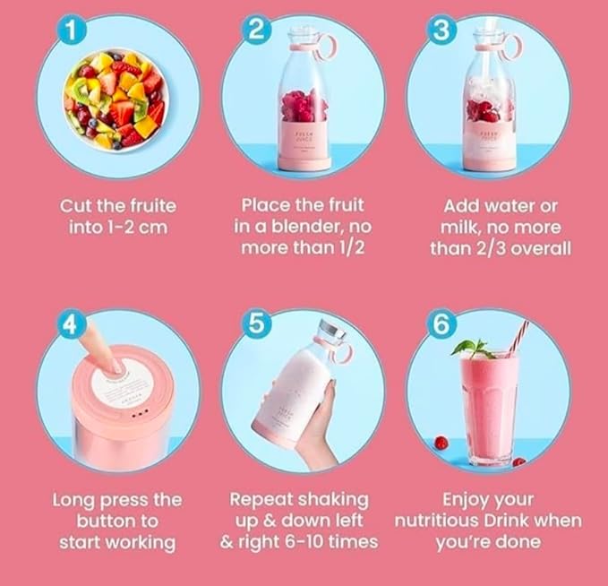 - Rechargeable and Portable: The portable USB rechargeable blender equipped with a built-in rechargeable battery makes 8 to 12 cups per charge. The mini blender is as easy to carry around as a water bottle that can hold 420ml of juice. It is suitable for home, work, school, or travel.